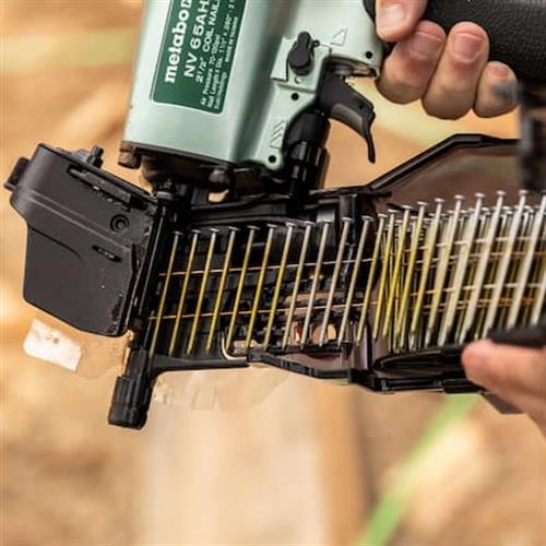 The Metabo HPT siding nailer is capable of driving nails as large as 2-1/2" x .099" at a rate of 3 per second, the NV65AH2 is both powerful and efficient. With added features like a selective actuation switch, side-load tilt bottom magazine and repositioned depth of drive adjustment dial, this professional siding nailer gets even better. Additional features such as the adjustable air deflector, no-mar nose cap and plastic shield add convenience, and the ability to use both wire or plastic sheet nails create flexibility.