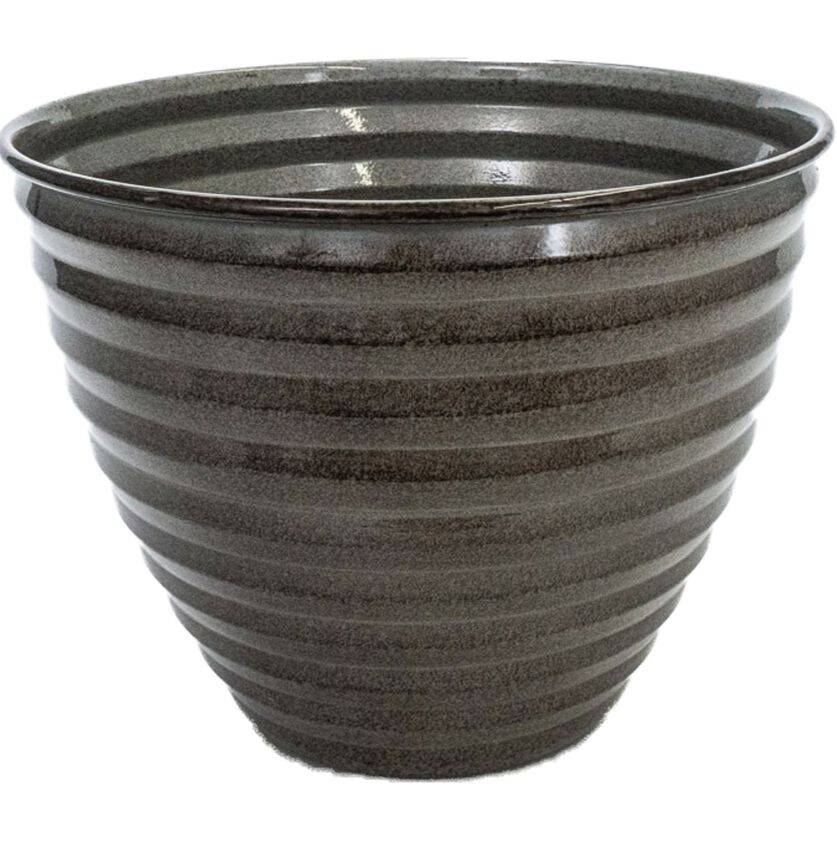 This contemporary yet classic design features horizontal ribs.Ā Each planter is finished with our exclusive Ironstoneā„¢ finish, a unique three-layer finish featuring a base coat, a texture coat and a glaze coat to give a rich ceramic appearance.