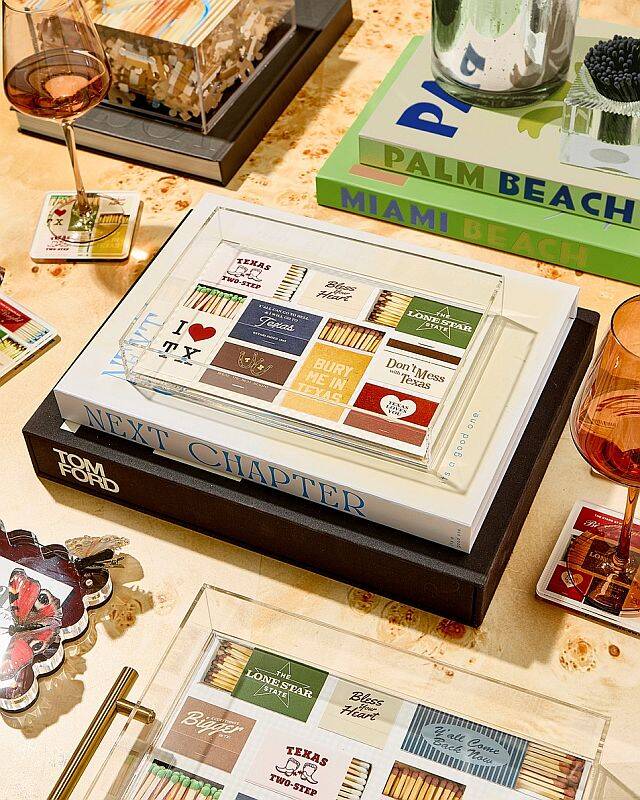 Serve up some Texas flair with our Texas Matchbook Small Tray! This durable acrylic tray features a fun, Texas-themed matchbook design and is the perfect accessory for any party or gathering. Show off your love for the Lone Star state while serving up drinks and snacks in style! Yee- Haw!