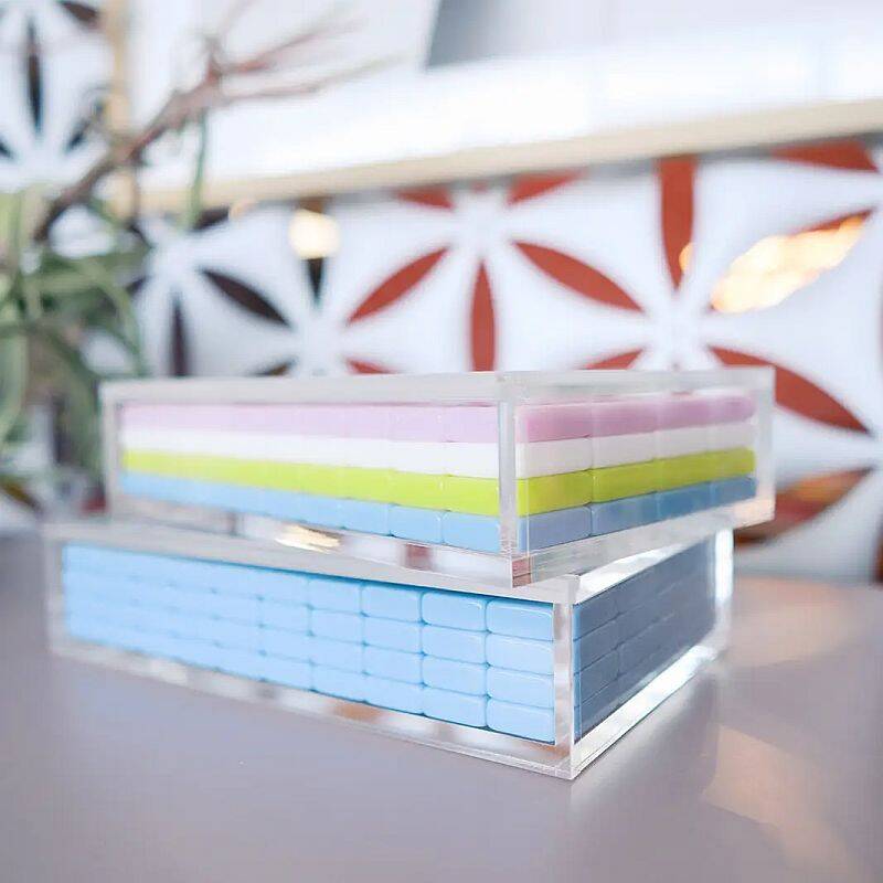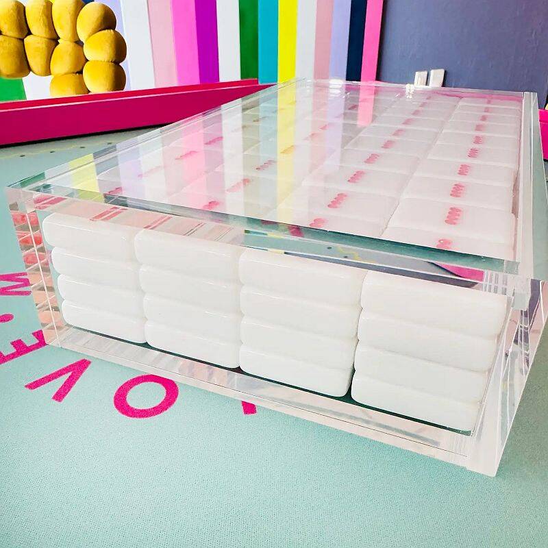 Store and show off your tiles in style! Our brand-new acrylic boxes are made from thick, durable 8mm acrylic and are designed to fit Peace Love Mahjong tiles, TML tiles, and most other similar sized tiles. Each box features a sliding lid that keeps your tiles extra secure?no need to worry about it falling off! Before purchasing, please double-check your tile dimensions against the inside measurements we?ve listed to make sure your set will fit perfectly. Whether you're keeping them safe between games or putting them on display, this box is a chic and practical addition to your Mahjong collection.