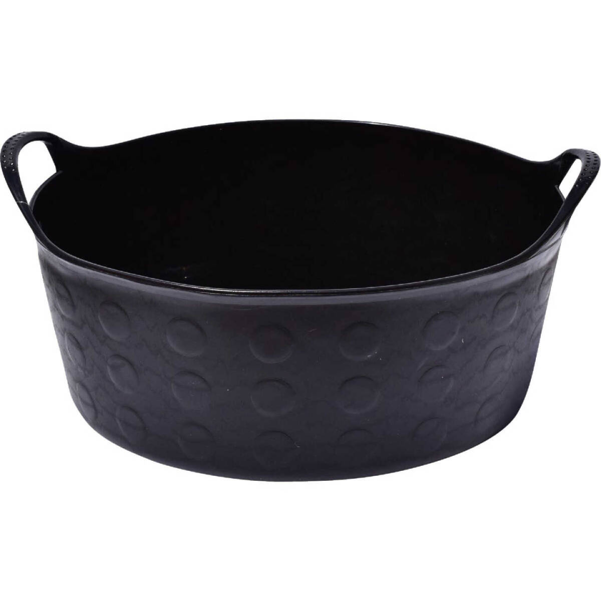 This short black multi-purpose flex tub can be used for the farm, home, or shop. You can store cleaning supplies, toys, animal supplies, and more in this heavy-duty rubber flexible 4-gallon tub.