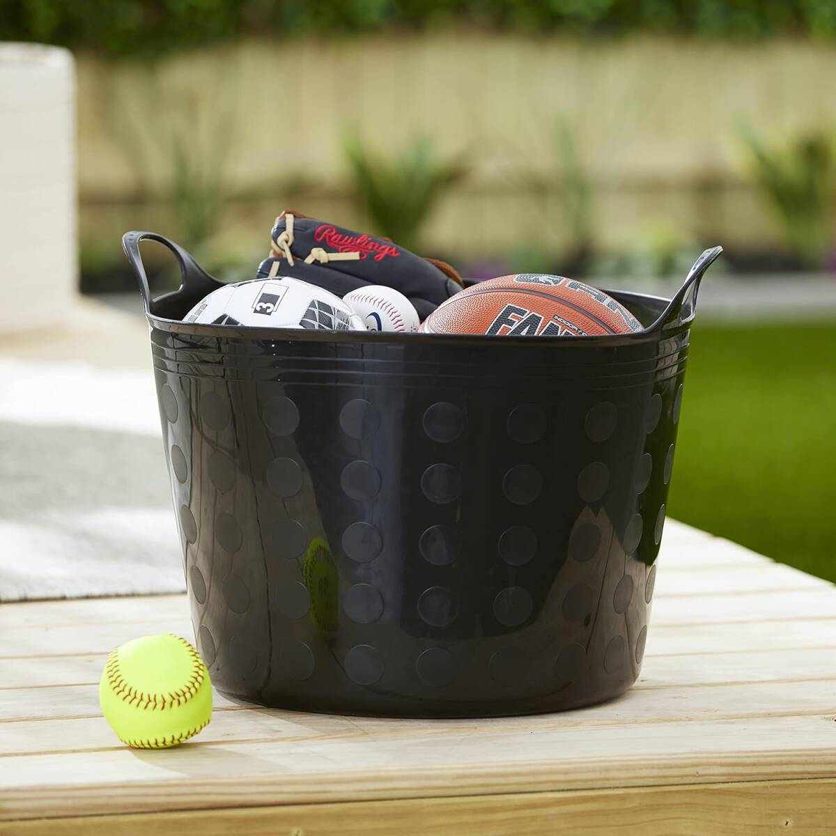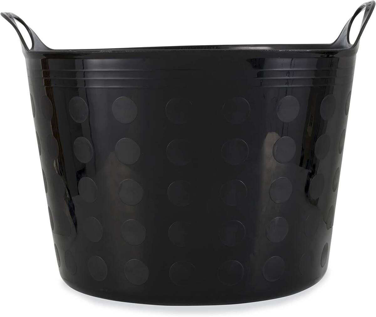 Tuff Stuff Products F12-BK Large 12 Gallon Plastic Outdoor Carry Flex Tub Storage Bin Container Tote Tubs Bucket with Handles, Black
