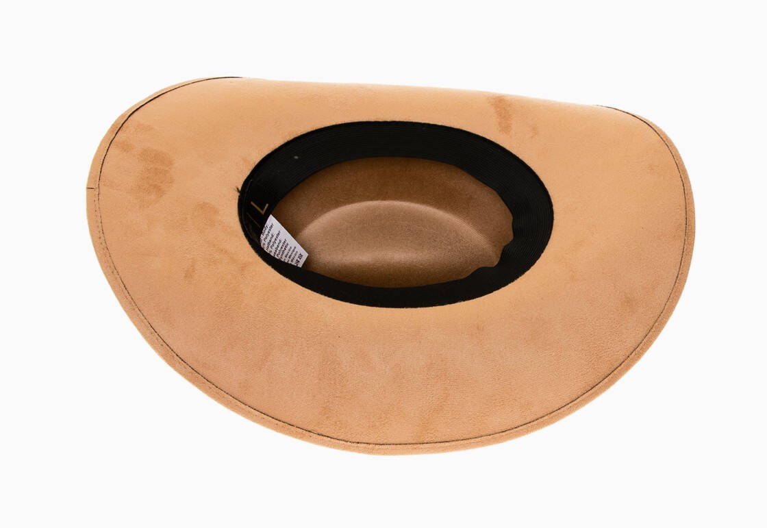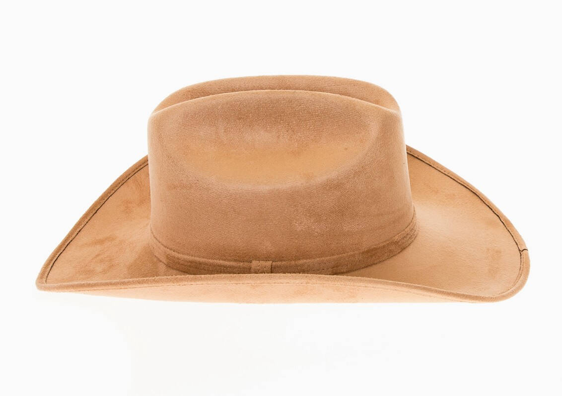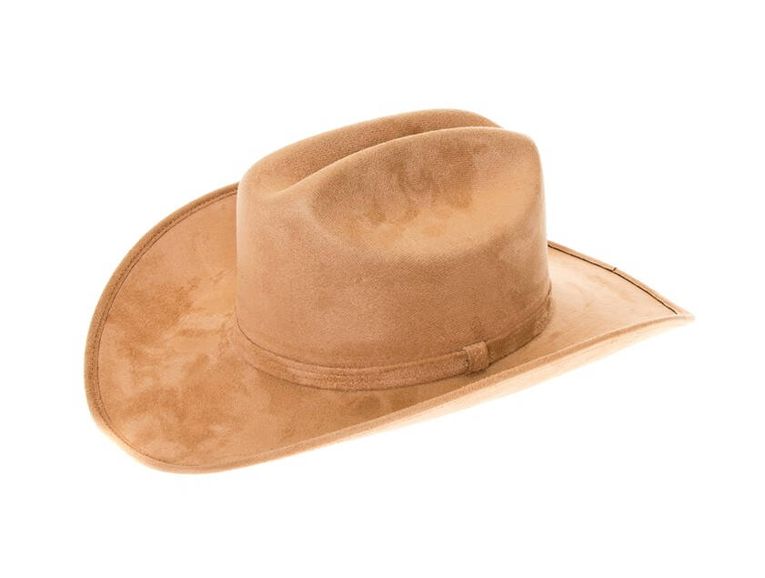 Premium vegan suede cattleman cowboy hat with a stiff brim. Unisex style for both women and men.