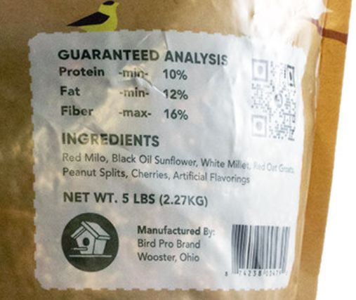Ingredients Red Milo, Black Oil Sunflower, White Millet, Red Oat Groats, Peanut Splits, Cherries, Artificial Flavorings