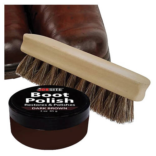 JOBSITE 54024 Boot Polish, Net Content: 3 oz , Package Type: Jar, Cream, Dark Brown, Odor/Scent: Mild Characteristic, Compositions: Proprietary Wax Blend, Petroleum Hydrocarbon Blend, Stoddard Solvent
