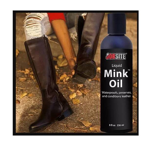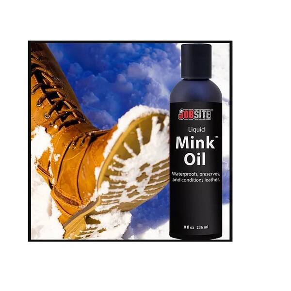 JOBSITE 54037 Mink Oil, Net Content: 8 oz , Package Type: Bottle, Liquid, Clear/Yellowish, Odor/Scent: Mild Petroleum, Compositions: Severely Hydro-Treated Heavy Naphthenic Distillate, Includes: (6) 8 oz Mink Oil Liquid Bottles