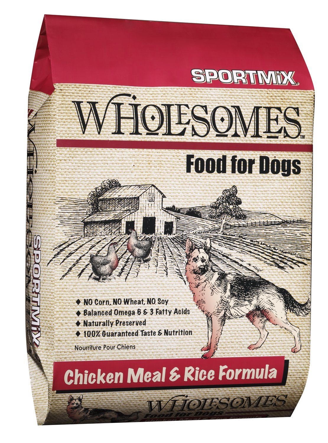 SPORTMiX Wholesomes Chicken Meal & Rice Formula is designed for dogs needing a high energy food from a single source of high-quality protein. Wholesomes Chicken Meal & Rice Formula is made without high-moisture protein sources or common grains like corn, wheat or soybeans. Wholesomes Chicken Meal & Rice Formula nutritionally balances Omega-6 and Omega-3 fatty acids to promote good skin and hair coat. The addition of natural vegetable fibers help support good digestion. SPORTMiX Wholesomes Chicken Meal and Rice Formula supplies your dog with a naturally preserved, 100% complete and balanced diet for a healthy, active life. Available in 40 and 16.5 lb. bags. Simply a wholesome alternative to common dog food formulas.