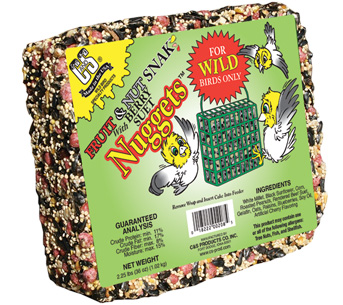 Fruit & Nut Snak with Berry Suet Nuggets attract the same wild birds as seed, and are very easy to use. Our E-Z fill feeders make wild bird feeding a snap! Great Wild Bird food acceptance all year long.
