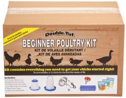 6-Piece Beginner Poultry Kit includes 10.5 in brooder reflector lamp, 250W red heat lamp bulb, 1.5-lb. plastic poultry chick feeder, 1.5-qt. plastic poultry chick waterer, 8 in plastic ground feeder, 12-page Poultry Guide booklet
