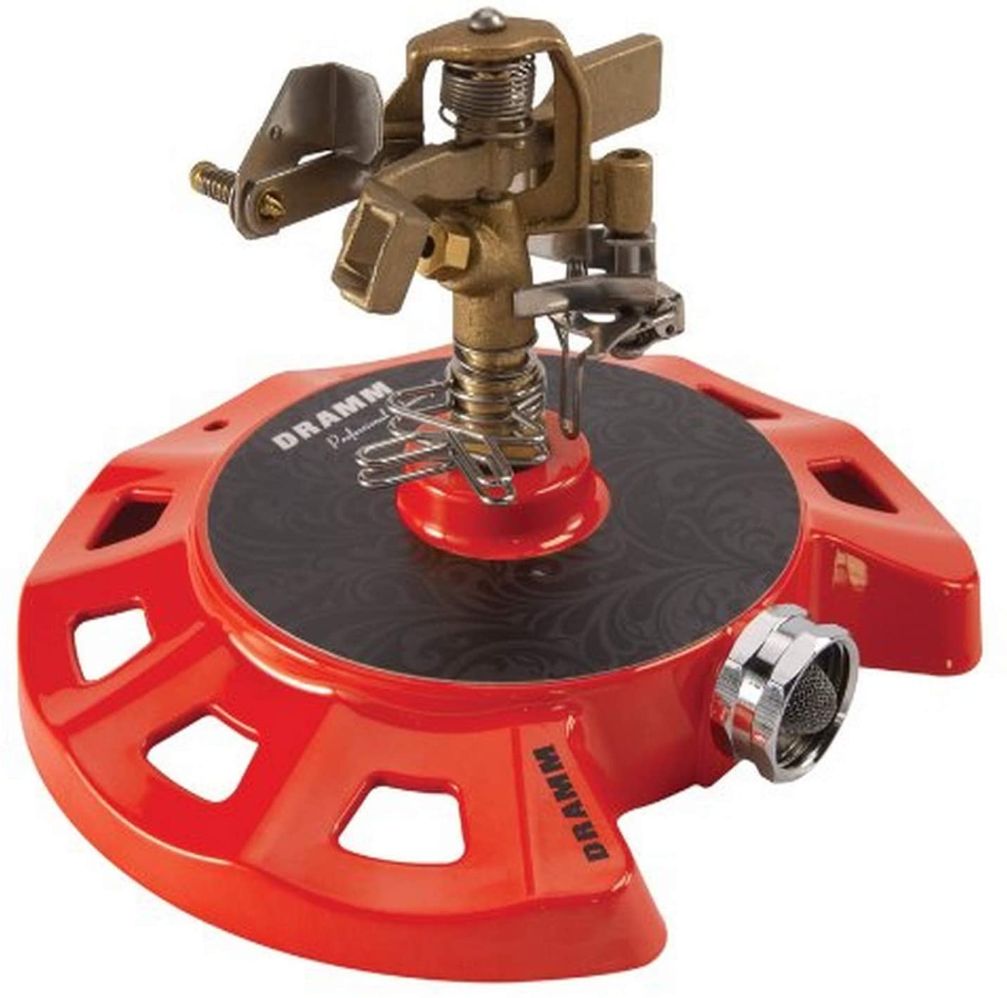 The ColorStorm circular base impulse sprinkler is made with a heavy-duty circular metal base for increased stability and a unique style. The all brass sprinkler head has adjustable partial and full circle patterns with water coverage up to 70 ft in Dia. The eye-catching design and color creates a decorative, yet functional tool in any yard. The ColorStorm circular base impulse sprinkler is backed up with a lifetime guarantee to the consumer.