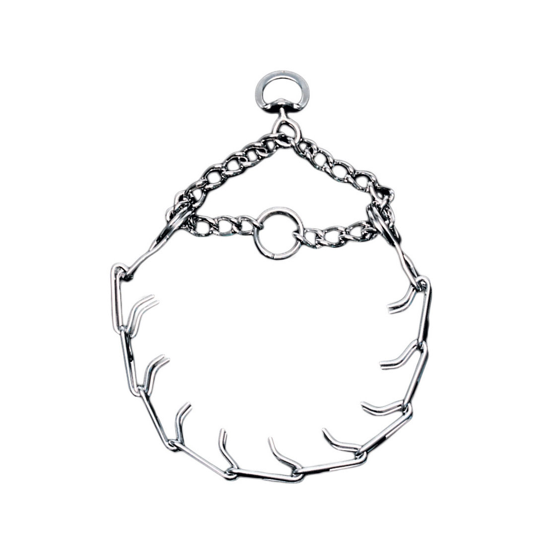 Our Titan Chain Training Prong Collar is argon welded and chrome plated for maximum strength and durability. It will not tarnish, rust or break. Featuring a link closure style, prong links unfasten for easy collar placement and removal. Extra links and vinyl comfort tips are available. Available in 2.0 mm x 14 in , 3.0mm x 18 in , 3.3 mm x 20 in and 4.0 mm x 22 in . Chain training prong collars are safe, effective training tools with proper use. They are not to be used for tie out.