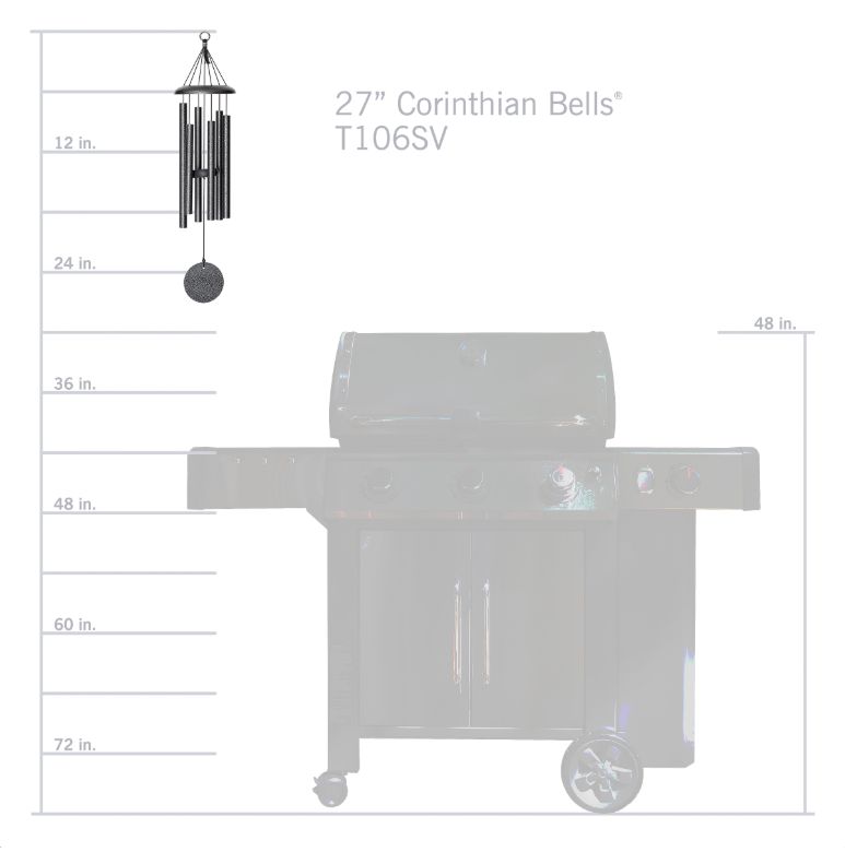 The Corinthian Bells® 27-inch T106 wind chime is a compact chime with an amazing sound at an affordable price. Enjoy the amazing sounds of a Corinthian Bells windchime in a compact size that fits any budget. Our smallest size, the two-pound T106 is great as an accent piece or for adding charm to your decor without using much space.