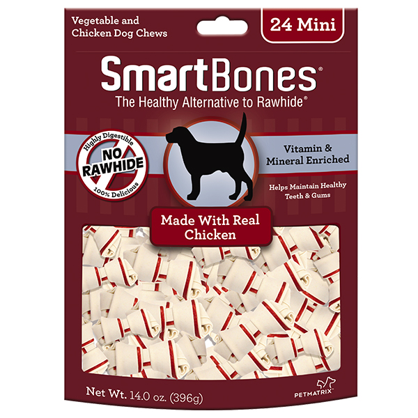 SmartBones have all the benefits of a rawhide chewWITHOUT the RAWHIDE! NO RAWHIDE SmartBones are made with REAL CHICKEN and wholesome VEGETABLES for a scrumptious taste dogs cant resist!