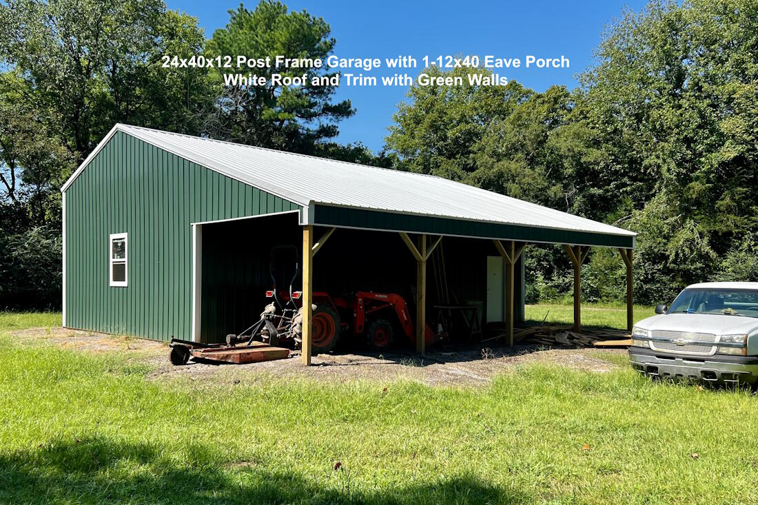 24x40x12 Post Frame Garage with 1-12x40 Eave Porch
