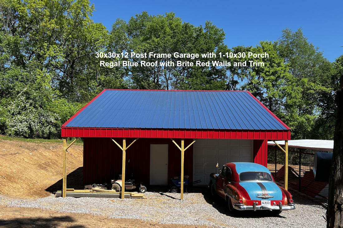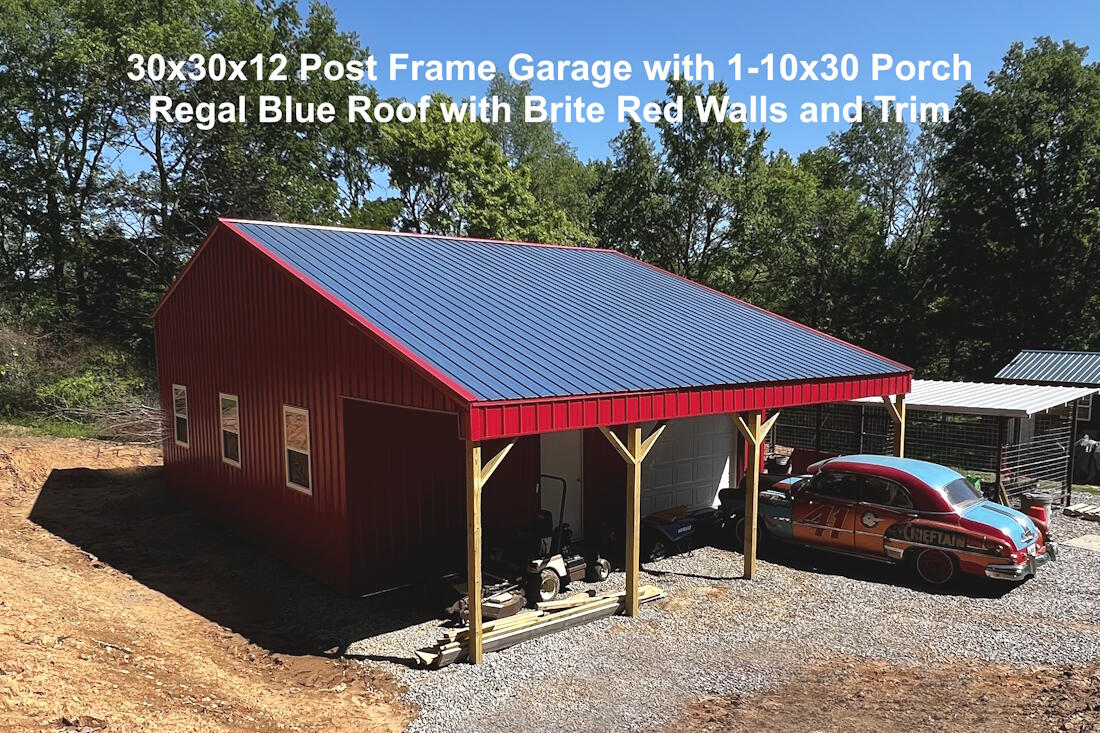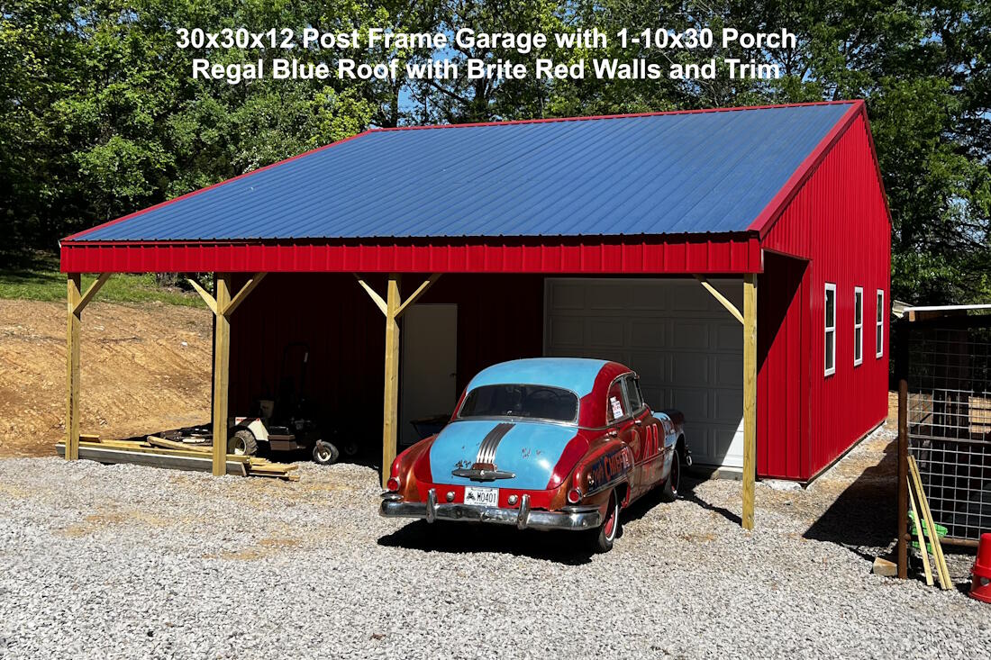 30x30x12 Post Frame Garage with 1-10x30 Porch
