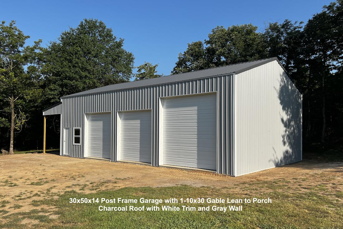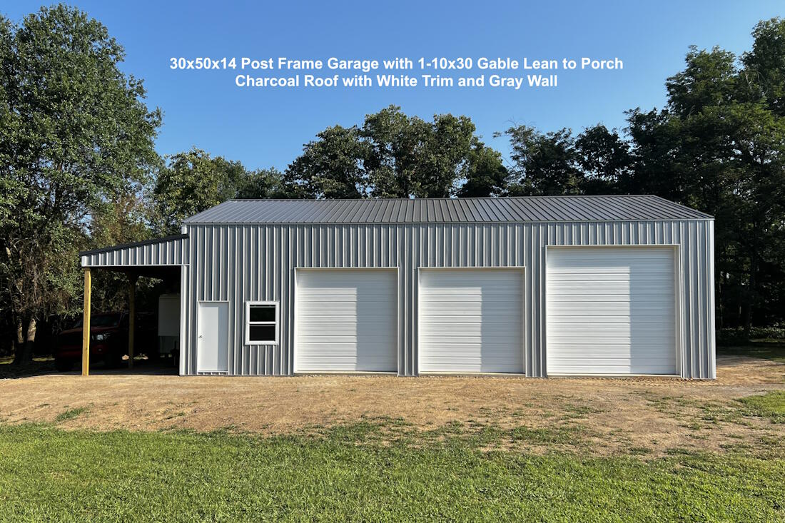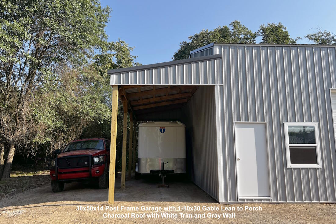 30x50x14 Post Frame Garage with 1-10x30 Gable Lean to Porch
