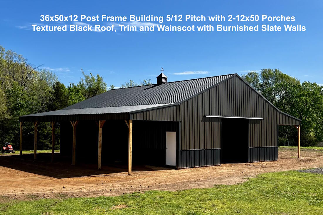 36x50x12 Post Frame Building 5/12 Pitch with 2-12x50 Porches